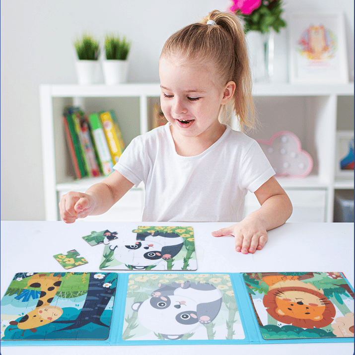 Magnetic puzzle set includes 3 premium version puzzles with imaginative and exciting scenes. From easy to difficult, full of fun and challenges. Great airplane activities for toddlers and children.